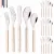 This Beige Silver 20-piece Stainless Steel Cutlery Set stands out not just for its stunning appearance but also for its functionality. Each piece is meticulously designed to offer comfort and precision during use. The sturdy stainless steel ensures that your knives, forks, and spoons maintain their shine and performance, even after regular use. The acrylic handles are designed to provide a secure, ergonomic grip, making your meals more enjoyable.