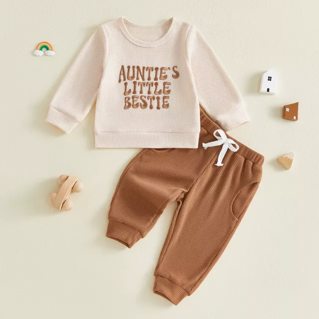 Choosing the right outfit for your toddler can be challenging, but this two-piece set simplifies your life by offering style, comfort, and practicality in one easy-to-wear package. The breathable fabric ensures that your toddler stays comfortable, no matter how active they are. The fun letter print on the sweatshirt brings personality to the outfit, while the jogger pants provide plenty of room to move, run, and play.